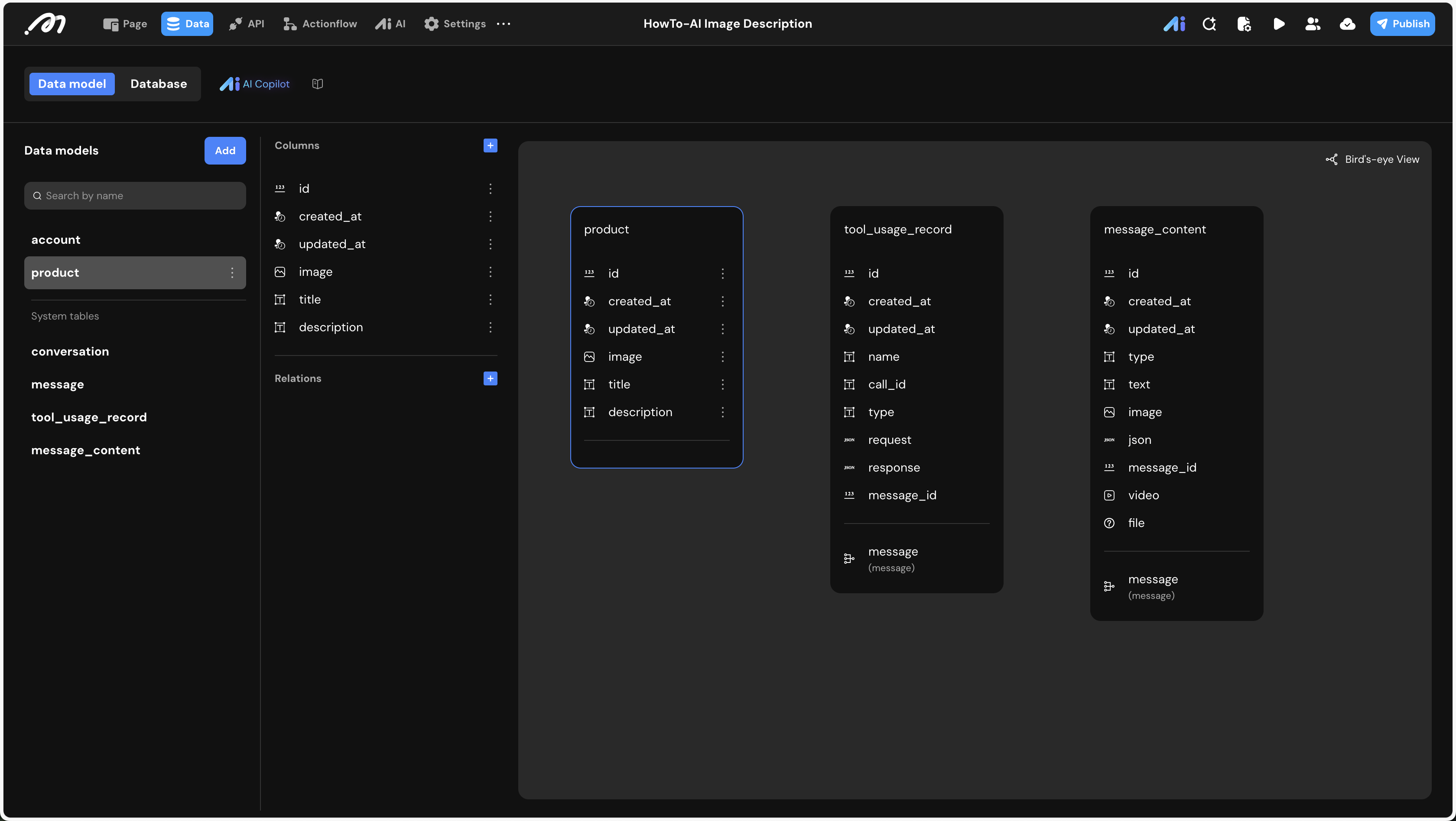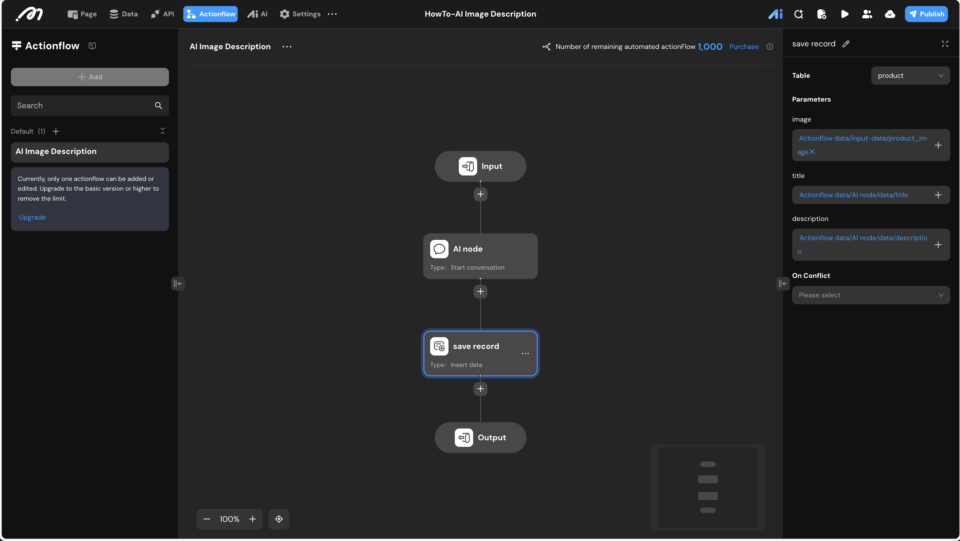 Actionflow data / AI node / data / description.