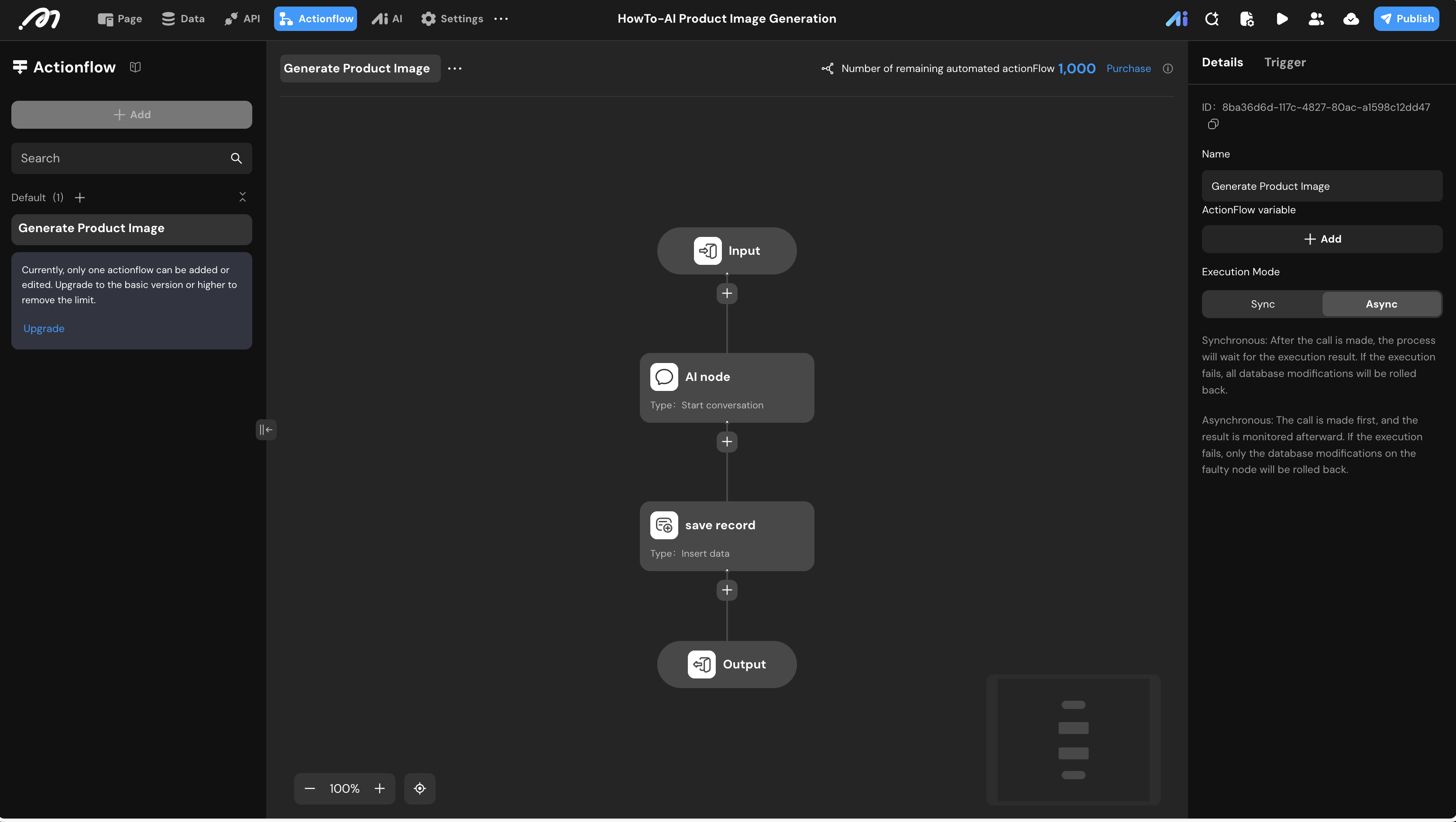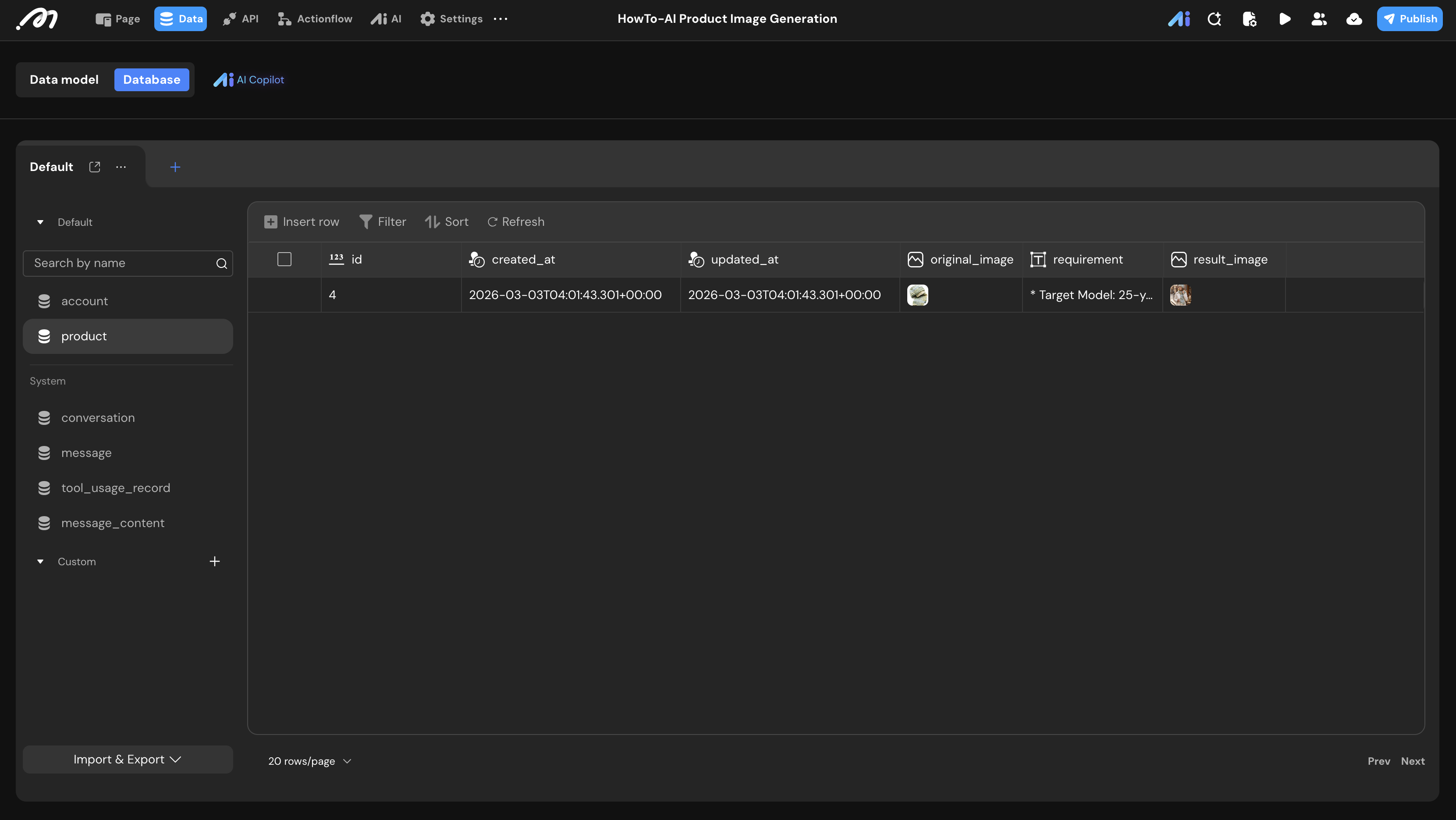 producttable. - Request Type: Subscription. This ensures the generated image appears automatically in the list once the background Actionflow completes.