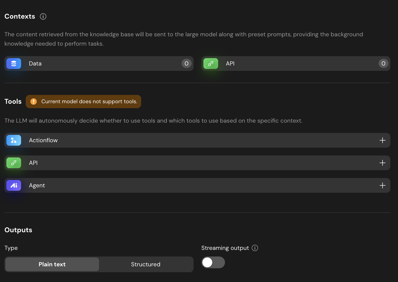 Plain textand disableStreaming output.